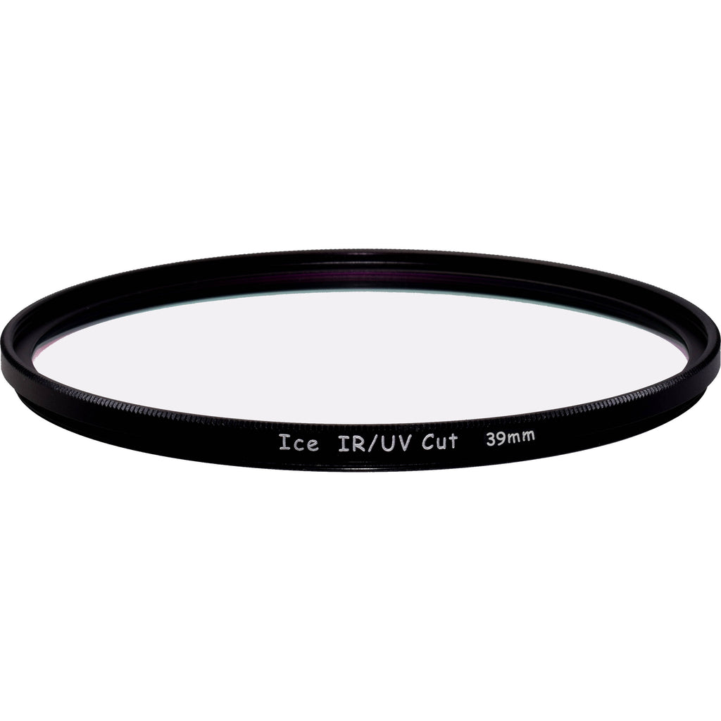 The 39mm Ice UV/IR Cut Filter is an ultraviolet and infrared control filter that is useful for digital cinematography and still photography. While recording video with a CCD or CMOS camera, multi-stop neutral density filters are used to maintain proper exposure by compensating for increased light levels when widening the camera lens' iris to obtain a narrower depth of field. As the increased amount of light passes through multi-stop neutral density filtration, visible light is progressively blocked, while infrared light is allowed to pass through. As the proportion of infrared light that reaches the camera sensor becomes greater, the results can show unwanted color shifts, particularly in dark areas of the frame, such as shadows where the appearance of black is dominant.
