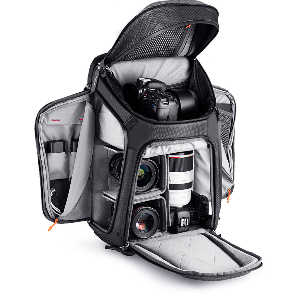 As a product that covers the professional photography crowd, the Alpha backpack has the same modular divider components as other professional backpacks. An exclusive magic top compartment design allows the top compartment to effectively secure and protect equipment while allowing you to allocate the top and bottom compartments in proportion to your needs or to carry unconventional sizes of equipment. The interior has a large number of individual compartments to provide you with an efficient way of organizing your belongings. Multiple openings including a double side opening allow you to quickly access equipment, whether you are left-handed or right-handed. The larger top is especiially good for accessing larger equipment. The front-opening makes it easy for you to organize your equipment before setting off.