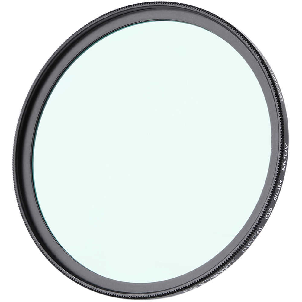 This Green Multi-Coated Schott B270 German Optics Slim UV Filter from K&F Concept fits lenses with a 37mm filter thread, providing ultraviolet filtration to reduce haze, with the added benefit of protecting the lens from dust, debris, fingerprints, and impact. Made of German Schott B270 optical glass for superb transparency, this filter also features multi-coating to reduce potential internal flare and glare. The slim profile design of this filter allows it to be used on wide-angle lenses without vignetting.