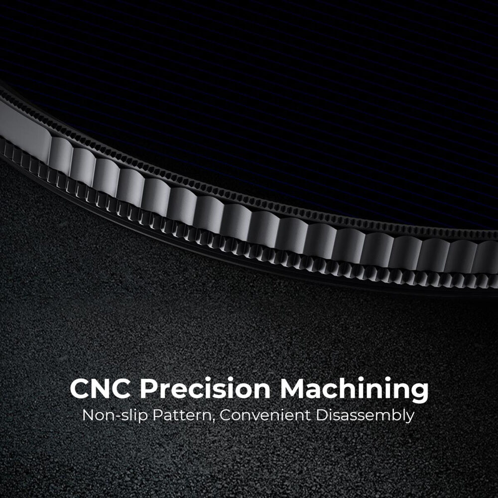The 52mm Nano-X Series Blue Streak Filter from K&F Concept can be used to add a layer of blue transparent lines to an image to create blur, deformation, and other visual effects. Grinding and polishing technology used on both sides of the filter ensures that the sharpness of the image is retained. The filter is made with 2mm optical glass and features a 28-layer coating that reduces reflections and also makes the filter waterproof, oilproof, and scratch resistant. The filter frame is made of aluminum and is only 5.3mm in thickness. The surface of the frame has a trapezoidal pattern for improved handling when rotating it to adjust the angle and direction of the blue streaks.