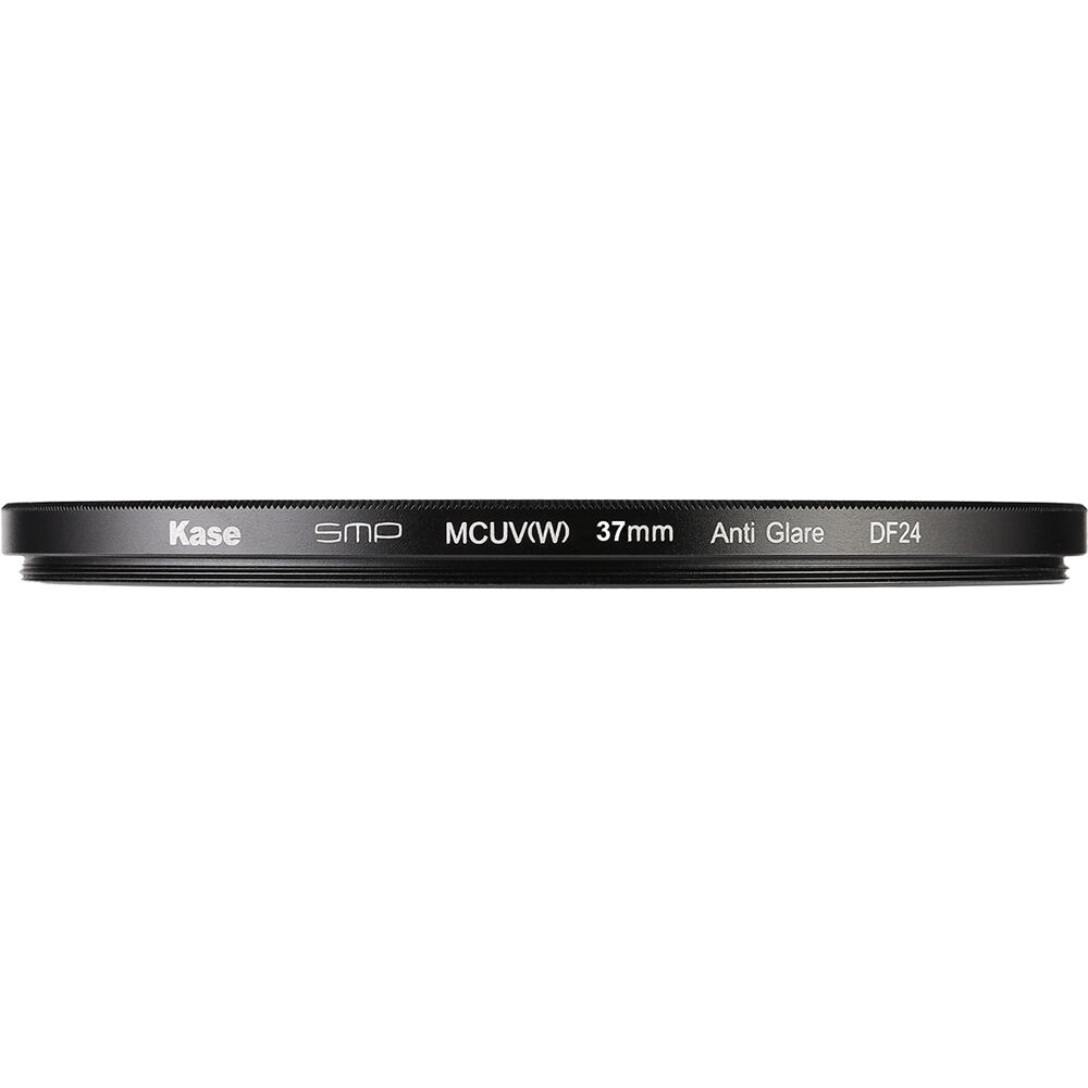 The circular threaded 37mm Kase MCUV III Ultra Slim UV Filter provides a slim form factor and 99% light transmittance when used to reduce ultraviolet light and protect the front of the lens. The filter reduces glare, reflections, and lens flares even in wide-angle applications. The double-sided, multicoated optical glass is oilproof, waterproof, and scratch- and dust-resistant. The filter was also designed to accommodate the manufacturer's lens caps and hoods with the filter attached.