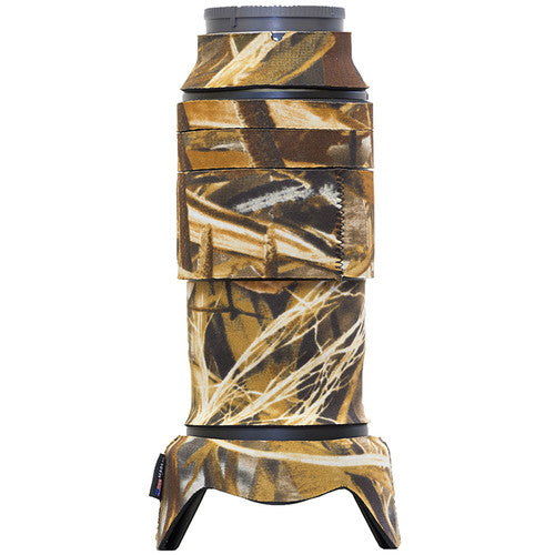 The LensCoat Lens Cover provides a thermal barrier, protecting your hands from cold lens surfaces in lower temperatures. It is easy to install and remove, leaving no residue on the lens. Because of the increased protection this covering provides, it can help preserve the resale value of your lens. The Realtree Max4 pattern offers effectiveness in open terrain. The pattern features cattails, millet, milo, corn stalks, sunflowers, oak and maple leaves, cedar and oak limbs, plus a variety of other plant life.