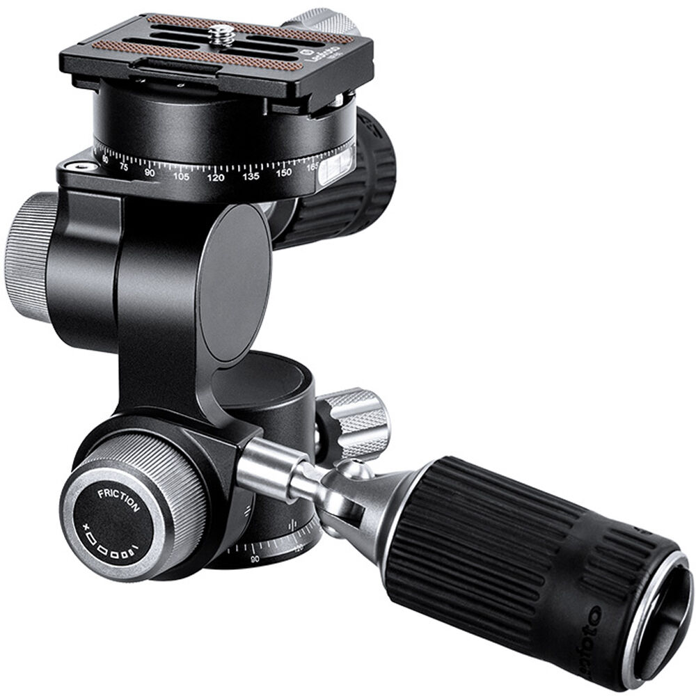 Leofoto is especially suited to macro, still life, and art photography. The levers can be rotated to lock the movement in place, and 1.3"-diameter friction dials control the tension for fine adjustments. For easy storage and portability, the levers fold up and out of the way. The head is made of hard anodized 6061 aluminum and comes with an Arca-type dovetail clamp and an NP-60 mounting plate with a 1/4"-20 camera screw.