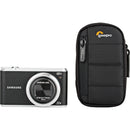 The black Tahoe CS 20 from Lowepro is a lightweight, easy-to-carry pouch for a compact point-and-shoot camera. Its zippered, wide-mouth design allows a camera to be accessed easily, and the interior features a padded, non-abrasive polyester liner. The nylon and polyester exterior is weather resistant, further protecting the contents. The front accessory pocket has a zippered closure and accommodates a memory card, spare battery, or small personal items.
