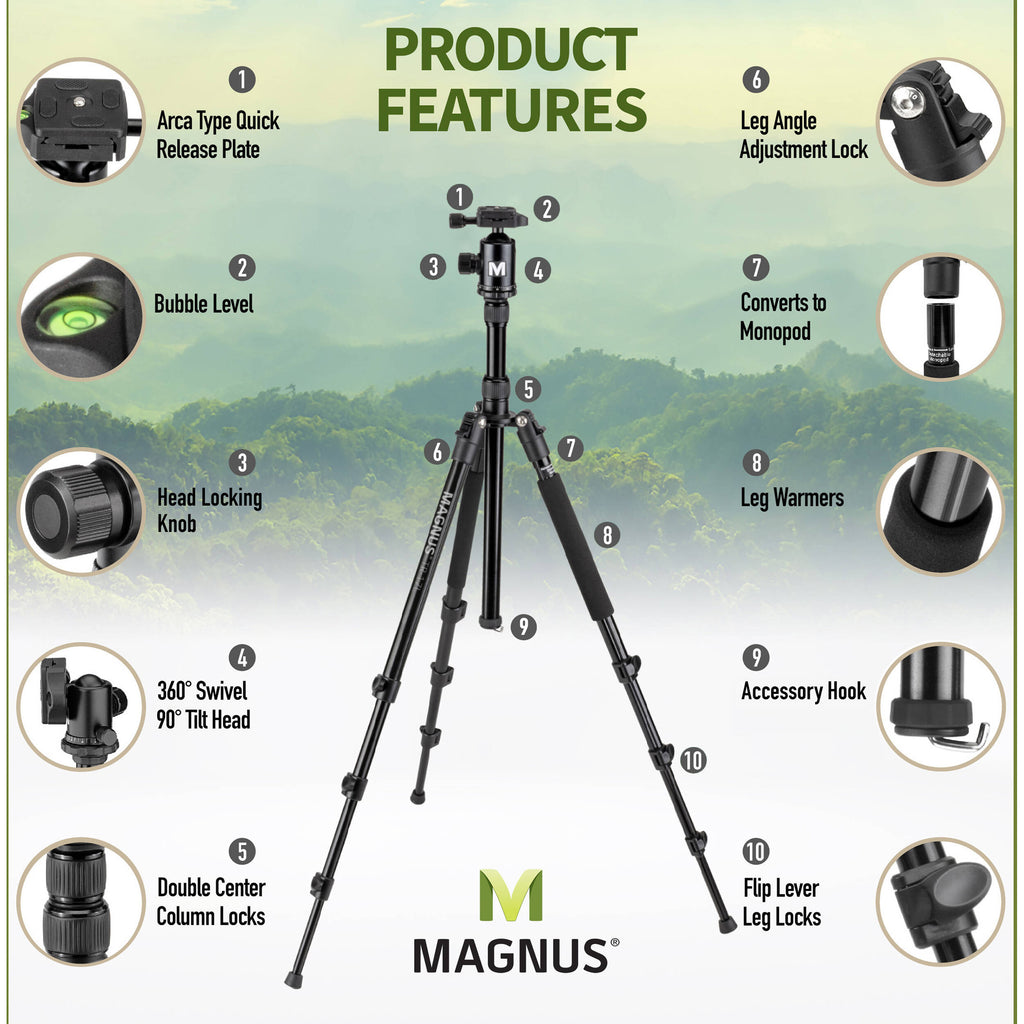 Magnus Aluminum Travel Tripod with Monopod and Arca-Type Ball Head