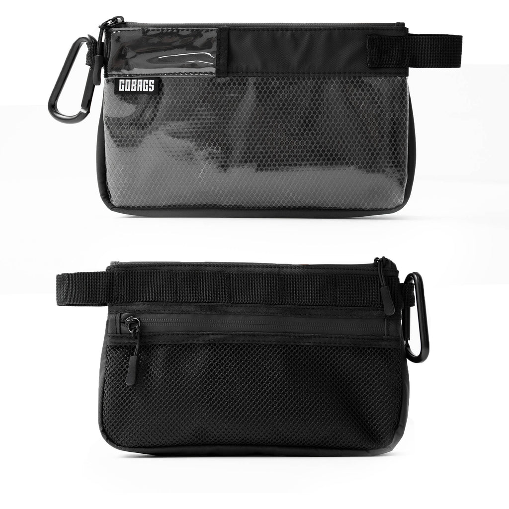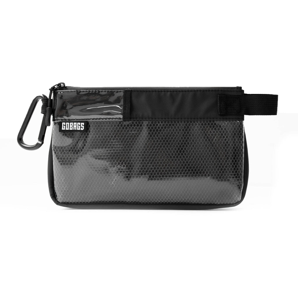 This small, black GoBag from Max Huggins is ideal for organizing the contents of your camera bag or hard case, and is designed to fit in a Pelican 1510 series case. Use the bag to keep your cables, batteries, memory cards, SSDs, and more neat and organized. Made from 600D polyester, it is laminated with a TPU water-resistant barrier. The front side is transparent so you can easily locate your gear. A gusset and exterior zippered lining provide even more storage space for miscellaneous items. The bag measures 9.5 x 6.5 x 1.5" and features dividers and pouches for flexibility.