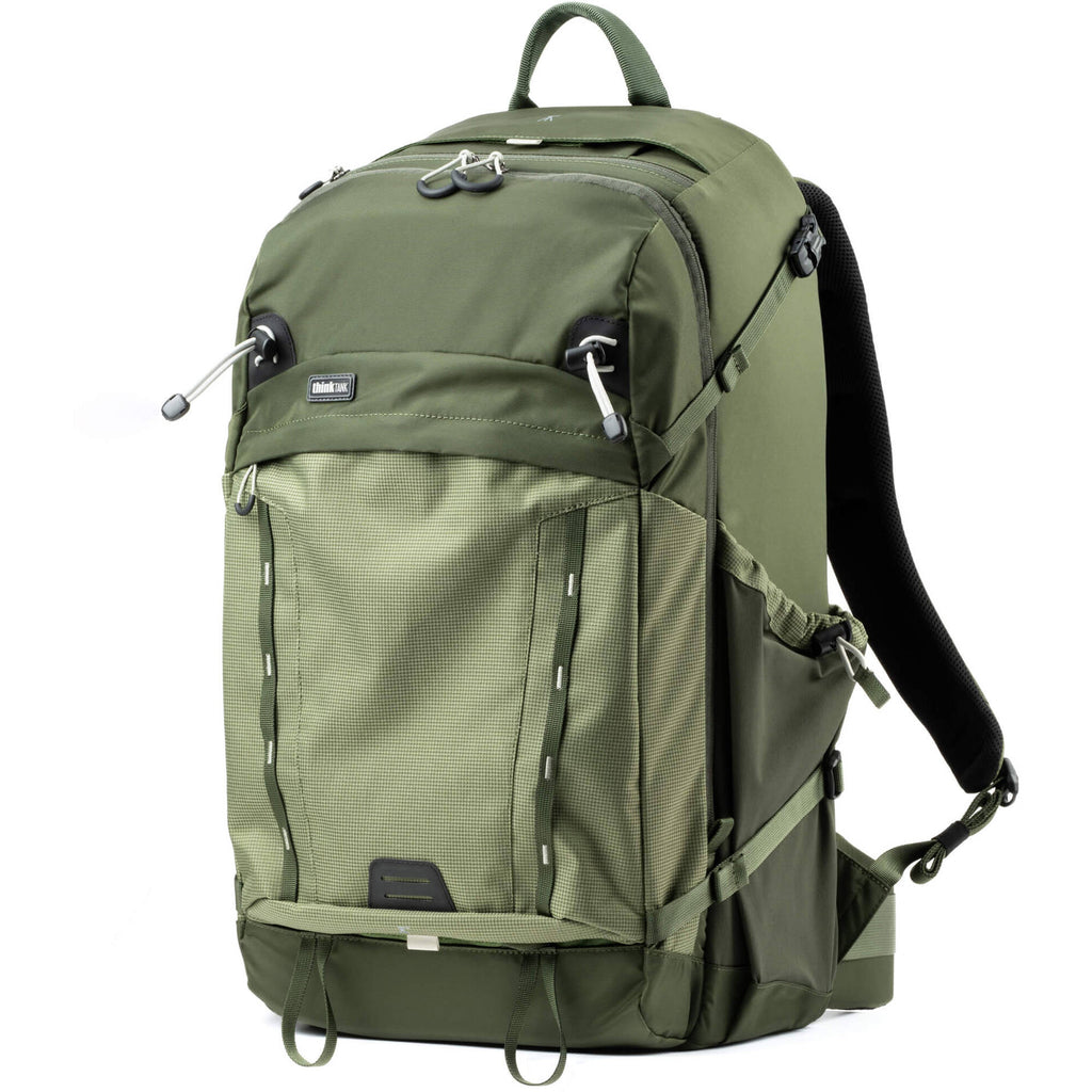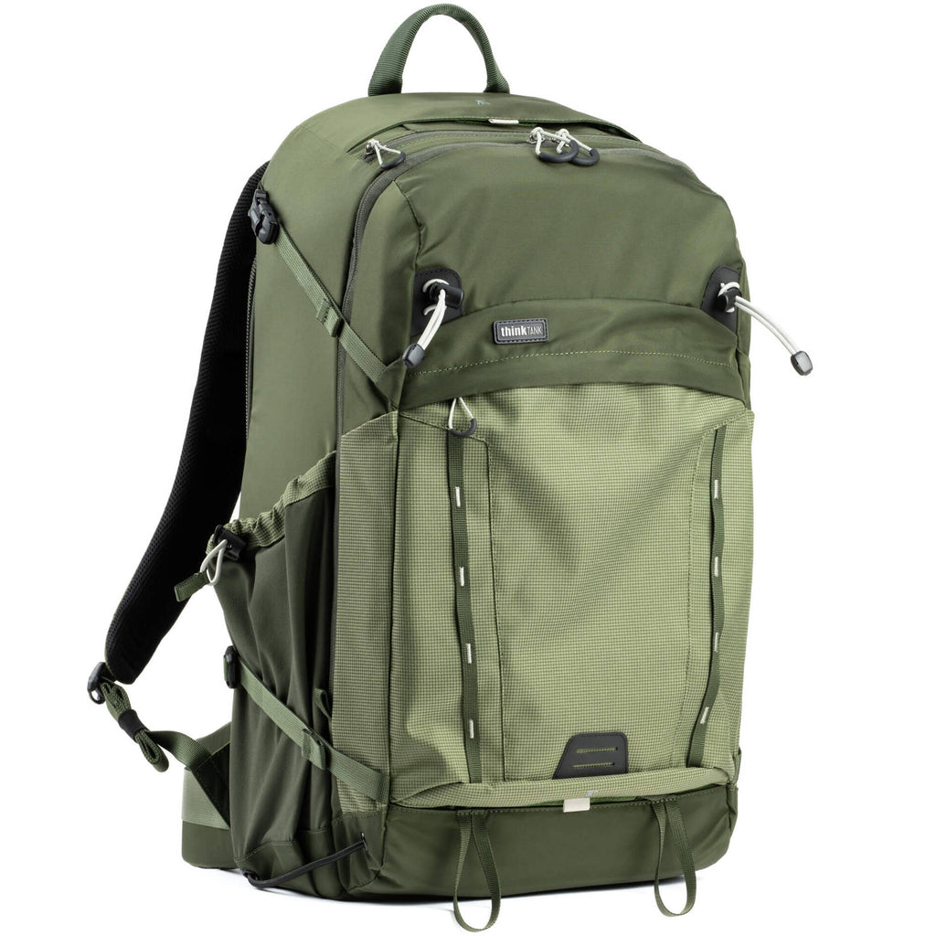 Carry and protect your photography gear and personal items with this 36L Backlight Backpack in Montane Green from MindShift Gear. This pack holds two gripped camera bodies with lenses attached, six standard zoom lenses, a flash, and accessories. Dedicated pockets accommodate your 16" laptop and 10" tablet. Front pockets with a total capacity of 11L are useful for storing personal items and large side pockets hold your water bottle and tripod. The pack has front and side mounting systems for attaching a tripod or a monopod as well as daisy chain, ice axe loops, and additional lash points to expand your carrying capacity.