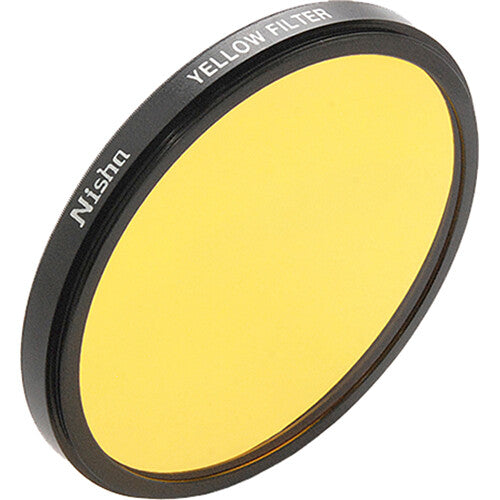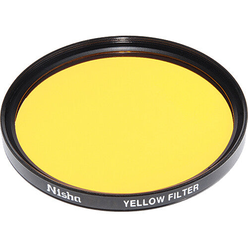 When using this filter, wavelengths of visible light that are apparent as violet and blue colors to the human eye are suppressed, while visible light associated with green, yellow, orange, and red colors are able to more easily pass though the Nisha 72mm Yellow Filter and into the lens it is mounted in front of. When photographing with this filter along with black-and-white film, violet to blue-colored subjects within a scene are reproduced in darker shades of gray than without a filter. Simultaneously, green, yellow, orange, and red subjects are rendered in lighter shades of gray than if a filter was not used.