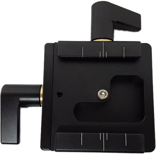 The F9131 Arca-Type Right Angle Dual Clamp from Nodal Ninja clamps onto compatible NN3, MK3, NN6, and Ultimate M1/ M2 rails. At the top of the clamp, it allows you to mount accessories such as an Advanced Rotator or any panoramic hardware, so both can slide back-and-forth across the rail. To keep the clamp secure on the rail, each clamp locks down onto the rail via the lever lock.