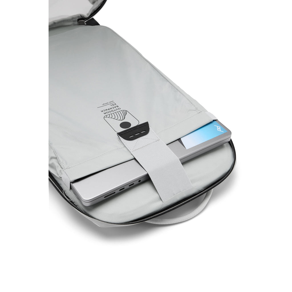 Carry your camera gear and outdoor necessities with this 25L Outdoor Backpack in Eclipse from Peak Design. Expand the roll top with Ultra Cinch closure to increase the capacity from 20L to 25L. Multiple interior and exterior pockets store all your essentials and a designated pocket holds your 16" laptop or a 3L hydration bladder. The pack can comfortably accommodate separately available Peak Design camera cubes, packing cubes, and pouches. It is also compatible with the Outdoor Hip Belt which is sold separately.