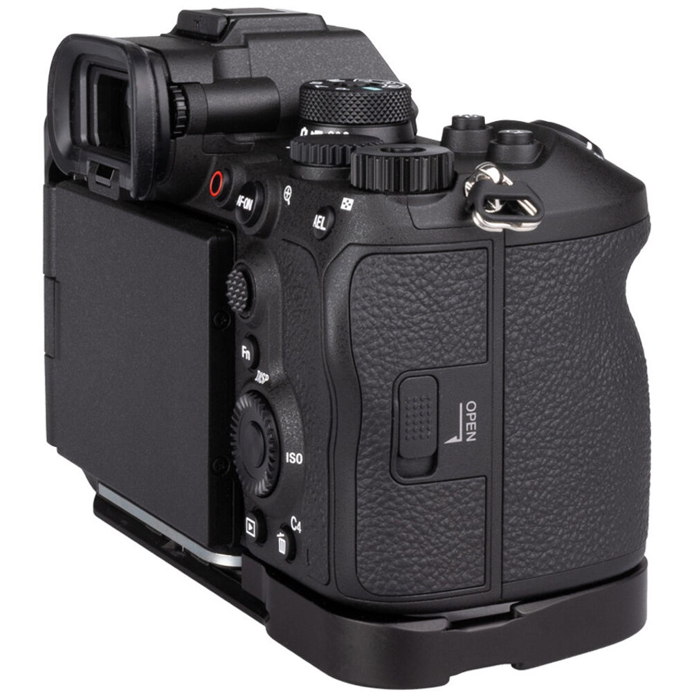 The Base Plate for Sony a9 III from Really Right Stuff is designed with anti-twist flanges to keep the camera from twisting while mounted on the plate. It is compatible with any standard 1.5" dovetail quick release system. The 6061-T6 aluminum plate maintains complete access to the battery door, and the plate has an option for an available L-component that fits its modular design to create a custom-fit L-plate. The base plate has a durable Type II anodized finish and a laser-engraved center mark on the rear to align it on a tripod head.