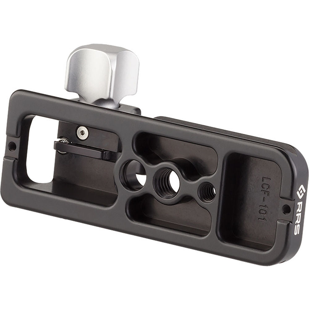 The LCF-101 Replacement Foot for Sony FE 100-400mm f/4.5-5.6 GM OSS and FE 70-200mm f/2.8 GM OSS Lenses from Really Right Stuff is a CNC machined 6061-T6 aluminum plate with an Arca-type compatible double-dovetail mount to attach accessories to the top or bottom of the plate. The low profile of this replacement foot provides a lower center of gravity for better balance when compared to the original foot of the telephoto lens. The plate has 1/4"-20 and 3/8"-16 mounting sockets in case there is no mounting clamp present, and an integrated QD socket is compatible with QD adapters, straps, and slings.