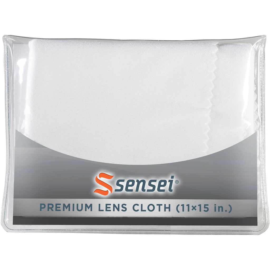 Nonabrasive Microfiber FabricWashable and ReusableFor Cleaning Glass Optics, LCD ScreensCleans Fingerprints and Dust This Premium Lens Cloth from Sensei is an all-cotton and nonabrasive microfiber cloth designed for cleaning glass optics without smudging or streaking, especially when removing stubborn oily marks like fingerprints. The 11 ? 15" size is suitable for large optics like telescopes and telephoto lenses, but may also be used to clean tablets, television displays, and monitor screens. This premium cloth can be washed with soap and water, or machine-washed with laundry when fabric softener is not being used.
