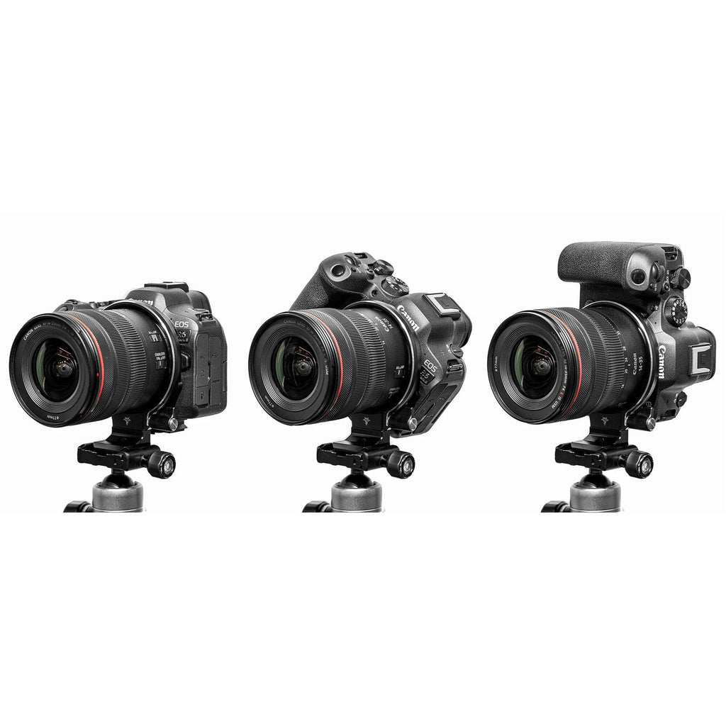 The Atoll C+ Rotating Camera Collar from Silence Corner is a rotating collar that attaches to a camera body to allow quick rotation from portrait to landscape orientation. This is useful for when vertical and horizontal images are required. Unlike a traditional L-bracket, the Atoll doesn't need to be removed from the tripod head to change orientation. Simply release the locking knob and rotate the camera to change from portrait to landscape orientation quickly and easily. Articulating screens can be fully moved and positioned without any compromise. The Atoll has tactile indicators at 0-, 90-, and 180° to ensure alignment is maintained. As the camera is mounted with the sensor positioned in the center of the Atoll, the center point of the image is maintained during rotation.