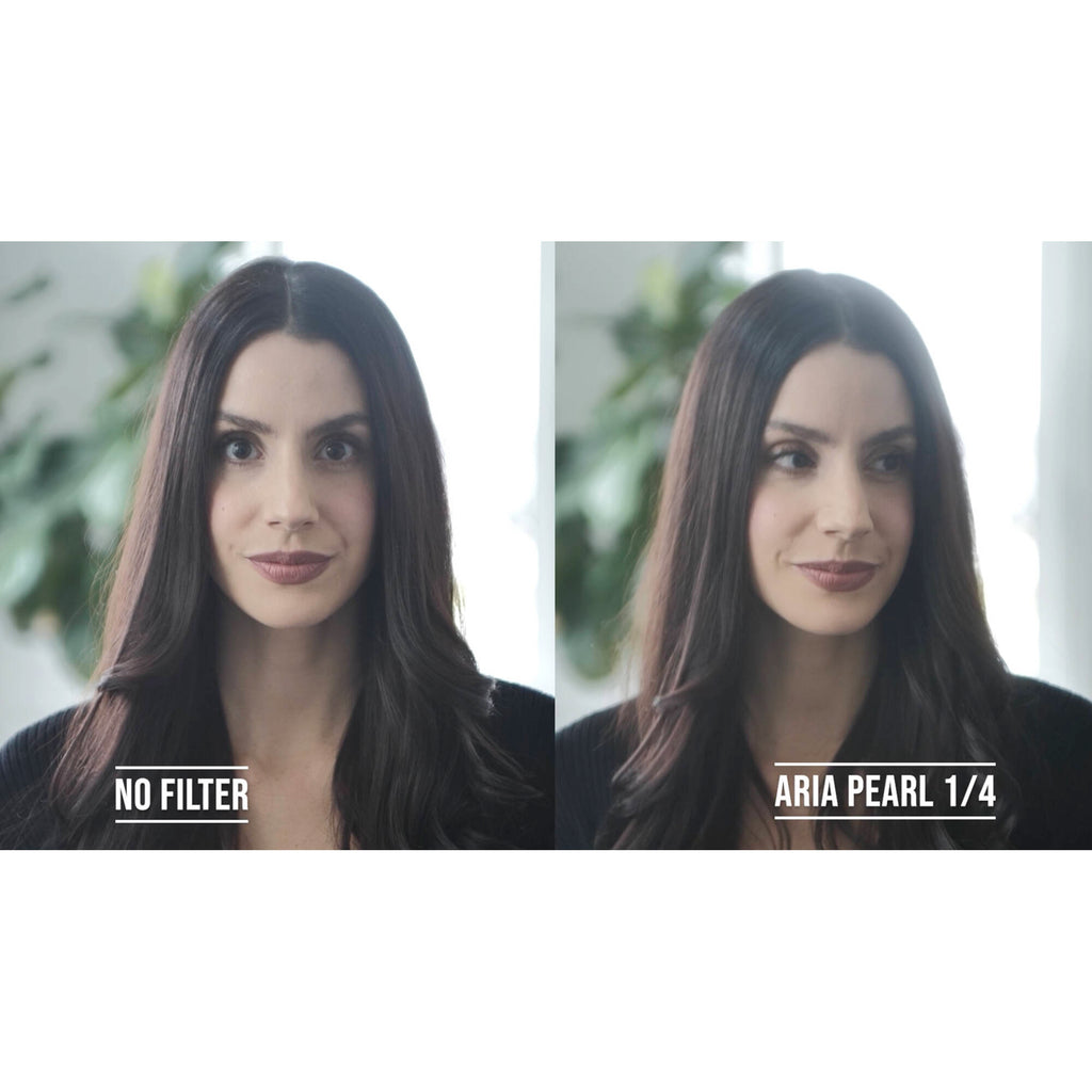 The 4 x 5.65" grade 1/2 Aria Pearl Filter from Simmod is a softening filter designed to create a pearlescent glow around highlights while softening the overall image for a delicate and cinematic look. Constructed from two layers of precision Schott glass within a brass frame, each layer is nano-coated on each side to provide an anti-reflective coating and repel water and oil.