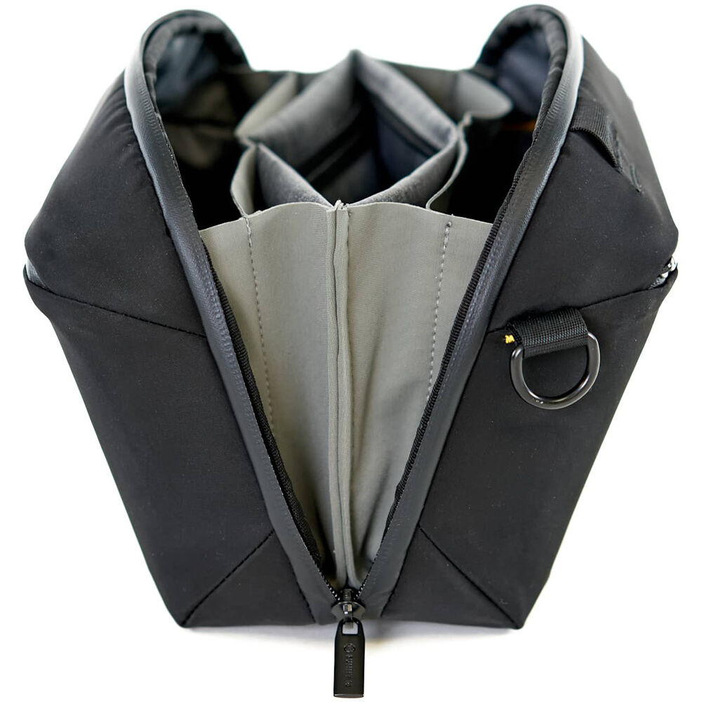 - The tech pouch features two main compartments with multiple zipper pockets to easily organize your electronics.