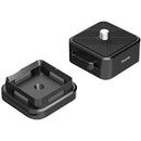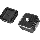 The Quick Release Plate Kit from TELESIN provides a quick release mounting solution for your camera. It features two components. One is a compact base with an Arca-type dovetail and three 1/4"-20 female threads. This can be secured to various supports, including gimbals, via the two mount types. The second component is a camera adapter. It offers a 1/4"-20 screw for your camera, and it attaches by quick release to the base component.
