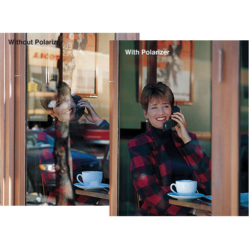 The Tiffen 3 x 3" Linear Polarizer Filter helps to reduce reflections and glare by filtering out light that has become polarized due to reflection from a non-metallic surface. The light from the sun naturally becomes partially polarized due to reflecting off electrons in air molecules, causing the light to scatter into what appears as haze. A polarizing filter arranges, and filters, this directionally polarized light perpendicularly to the reflected light, allowing for the absorption of much of this light. This results in a noticeable reduction of glare and reflections from non-metallic surfaces and an increase in the saturation of skies and foliage.