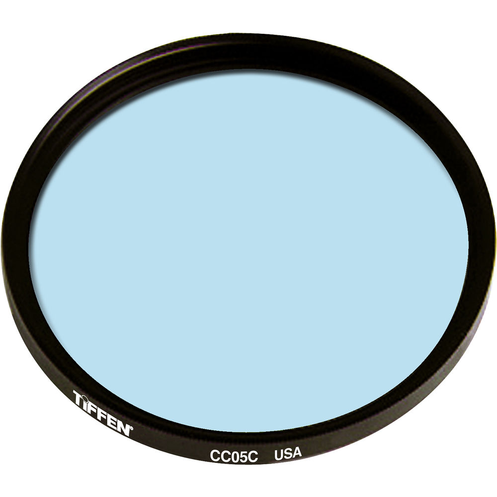 The Tiffen 4.5" Round CC05C Cyan Filter is a color compensating (or color correction) filter for use when making color balance adjustments. It can be used to alter the color balance of a scene by placing in front of a light source or the lens of your camera. It can also be used to apply color corrections when used in the darkroom with an enlarger or to help pre-visualize color adjustments when viewing prints.
