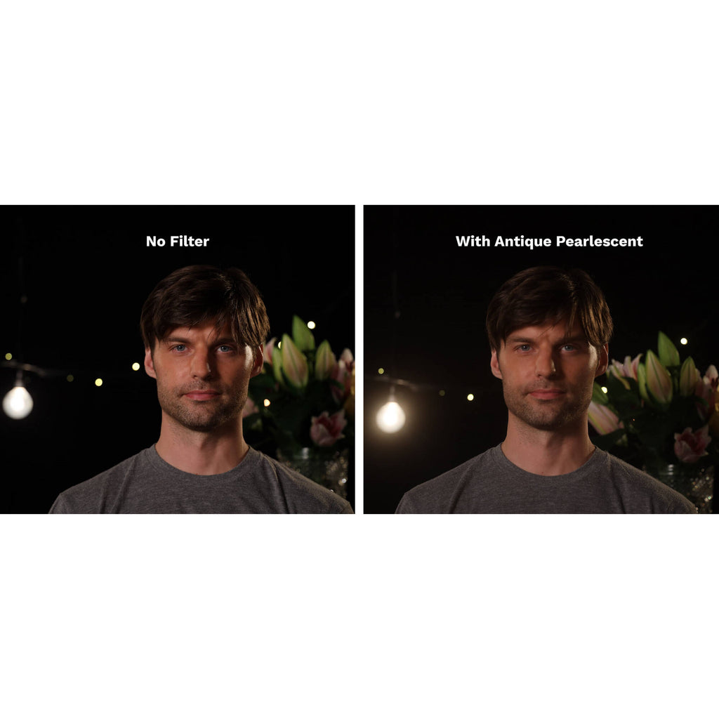 The 4 x 4", 1/8-density Antique Pearlescent Filter from Tiffen creates a soft, pleasing atmospheric glow, along with a mild desaturation of colors and gentle creamy halation. This makes it ideal for period pieces or to create the look of a warm summer afternoon.