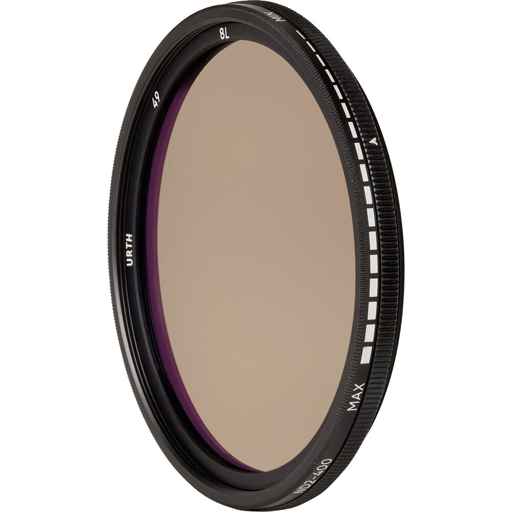 Cinematographers can use this 49mm ND2-400 (1-8.6 Stop) Variable ND Lens Filter to create more cinematic effects in bright light. The filter comes with a protective travel tin case, a recycled cleaning cloth, and recycled plastic-free packaging.
