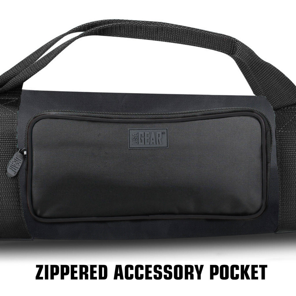 Carry and protect your tripod with the S1 Tripod Case from USA Gear. This case is made to protect your tripod from bumps, knocks, debris, and moisture. It has a zippered side pocket that can hold small accessories. A full-length zipper with two zipper pulls makes packing and removing your tripod easy. You can carry your bag with the double top handles or use the adjustable crossbody strap.