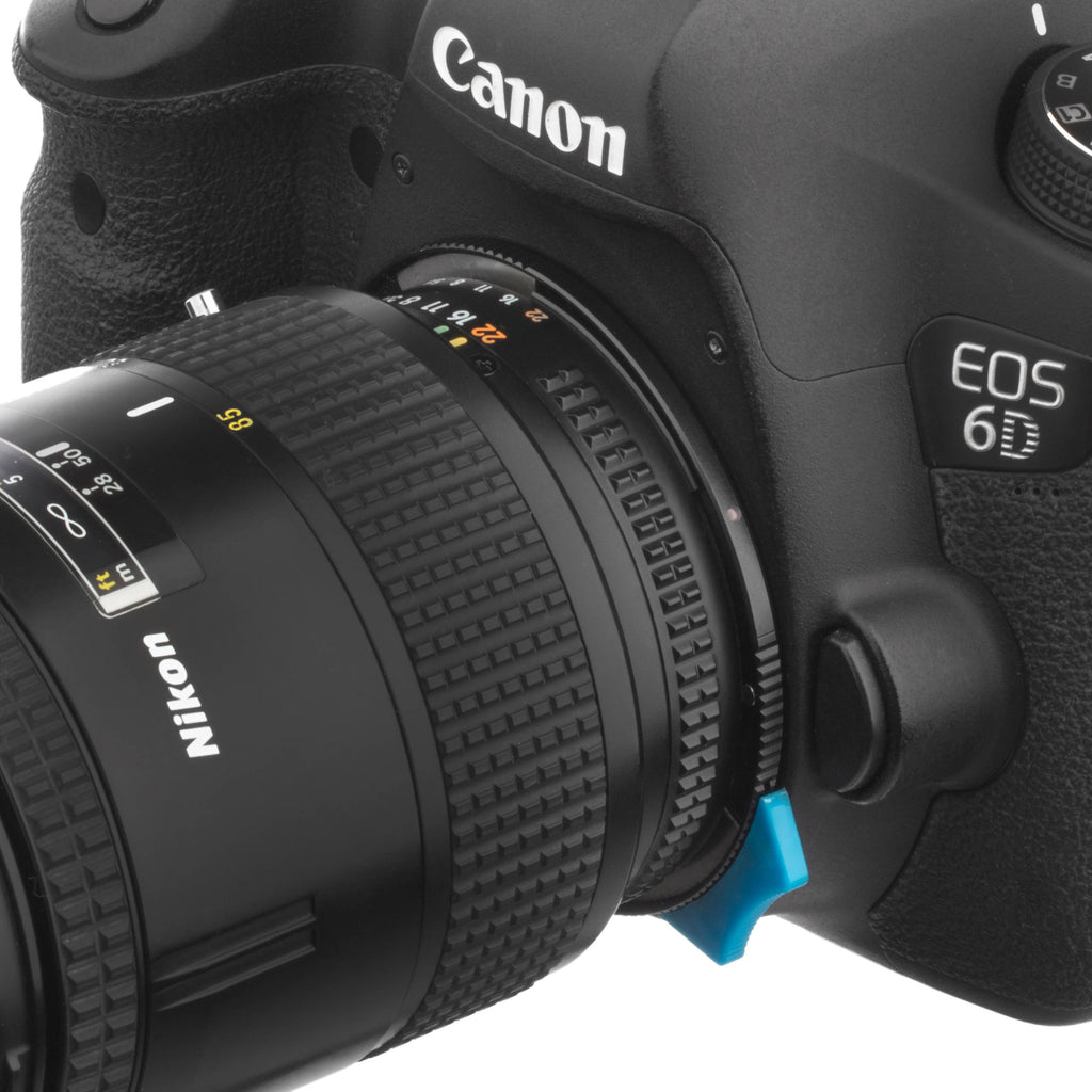 - This adapter enables the use of Nikon F lenses on Canon EF/EF-S-mount cameras, meaning you can now use your existing stable of lenses on your current camera. It is also very secure, holding the lens in place without any wobble sometimes associated with the adapting process.