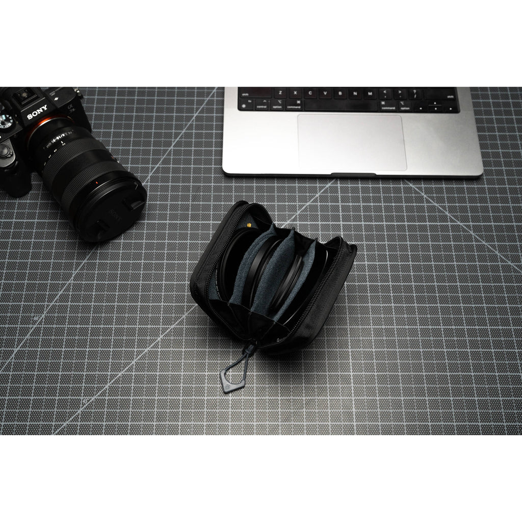 This aegean blue Lens Filter Case from WANDRD helps protect your lens filters when stored or on the go. The soft interior dividers protect up to four filters from scratches, while the weather resistant materials helps protect them from the elements. A webbing loop on the outside of the case makes it easy to clip to bags, straps, or even belts for quick access.