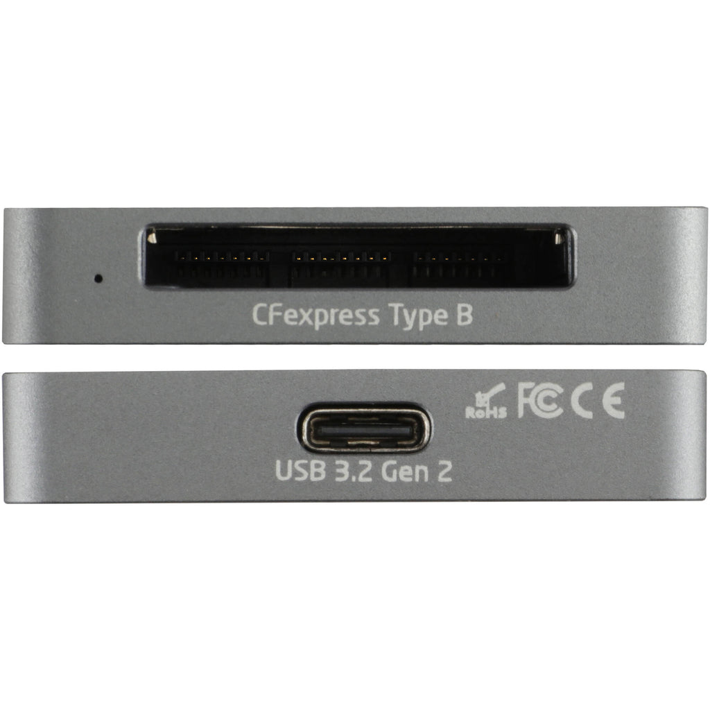 Quickly transfer 4K video and other large files to your computer for post processing using the CFexpress Type B Card Reader from Xcellon. This card reader features one CFexpress Type B card slot and operates using the 10 Gb/s USB 3.2 Gen 2 standard. Connectivity to your host system is established using a USB-C interface, as well as included USB-C to USB-C and USB-C to USB-A cables. Thanks to plug-and-play connectivity, no additional drivers are required, while power is provided via your system's USB port. An aluminum enclosure helps dissipate heat and keep things cool and a nonslip rubber base helps keep the card reader in place on your desk. Thanks to push-lock security, cards are secured in their individual slots and an LED indicator provides visual cues for power and data processing.