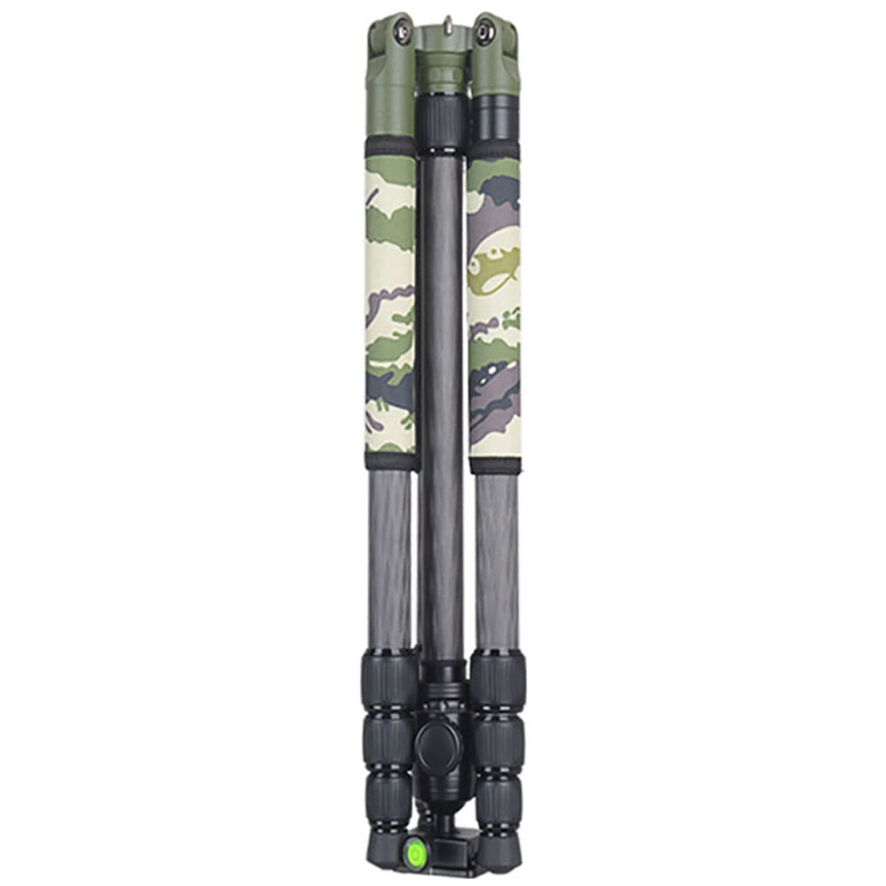 The T284C+FB-1 Camouflage Carbon Fiber Tripod from XILETU is a full-featured tripod with a camouflage design, ideal for use when shooting birds and wildlife. It has a robust load capacity of 35.3 lb, making it suitable for use with all types of cameras up to mirrorless cameras and DSLRs with large telephoto lenses. It has a maximum height of 68.1", but the legs reverse-fold down to a compact 18.1" for easy transport and storage. The reverse-folding legs also allow the camera to be inverted and lowered to ground level for low-perspective and macro photography. The center column also has a spring-loaded ballast hook for adding weight for increased stability.