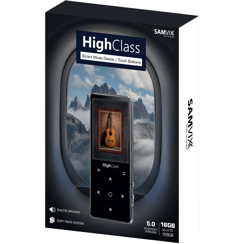 Enjoy a safe way to listen to your favorite music and other audio files when using the white-colored HighClass 16GB Kosher MP3 Player from Samvix. You get 16GB of built-in storage for your files, but you can expand that with an optional SD cart up to 128GB in size. The HighClass offers three ways to listen to those files: stream them to an optional Bluetooth speaker or headset, plug in an optional pair of headphones, or use the built-in speaker.