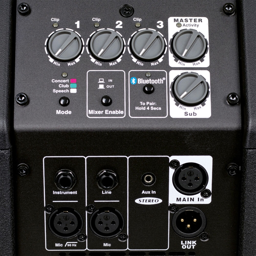 1x XLR 3-Pin Female Link Input 1x XLR 3-Pin Male Link Output 1x 1/4" TS Female Inst Input 1x 1/4" TRS Female Line Input 1x 1/8" / 3.5 mm TRS Female Aux Input |