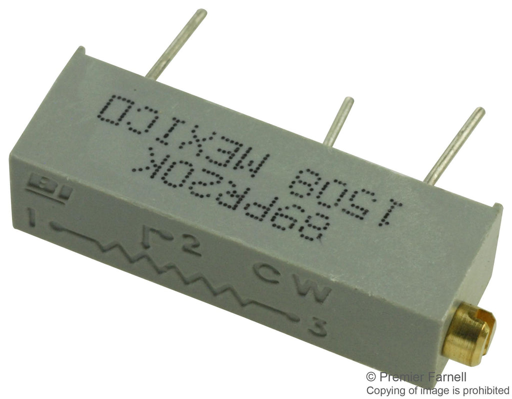 This is a TRIMMER POTENTIOMETER, 20KOHM 20TURN THROUGH HOLE product from BI TECHNOLOGIES / TT ELECTRONICS with the model number 89PR20KLF