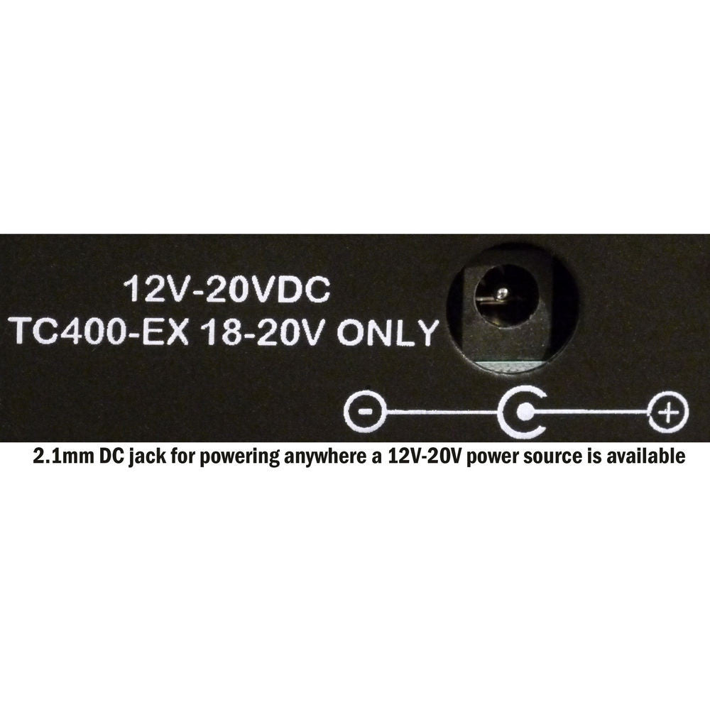 The TC400 has fully independent channels and deliver simultaneous charging to all four batteries. Based on a capacity of 5600mAh, this particular model delivers a complete charge to a single battery or up to four batteries in approximately 3.5 hours.
