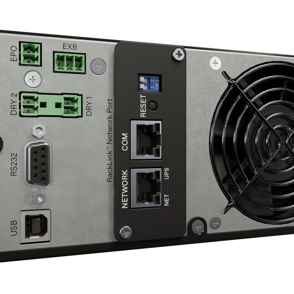 The NEXSYS UPX-RLNK-2000R-8 supports line-interactive technology, a surge rating of 1000 joules, Pure Sine Waveform, and AVR. When power is lost, the hot-swappable lead-acid battery provides up to ten minutes of run time at half-load, and up to three minutes at full-load, allowing your connected devices time to shut down. The front panel provides access to the hot-swappable lead-acid battery and an LCD screen, allowing quick access to the battery and important system information.