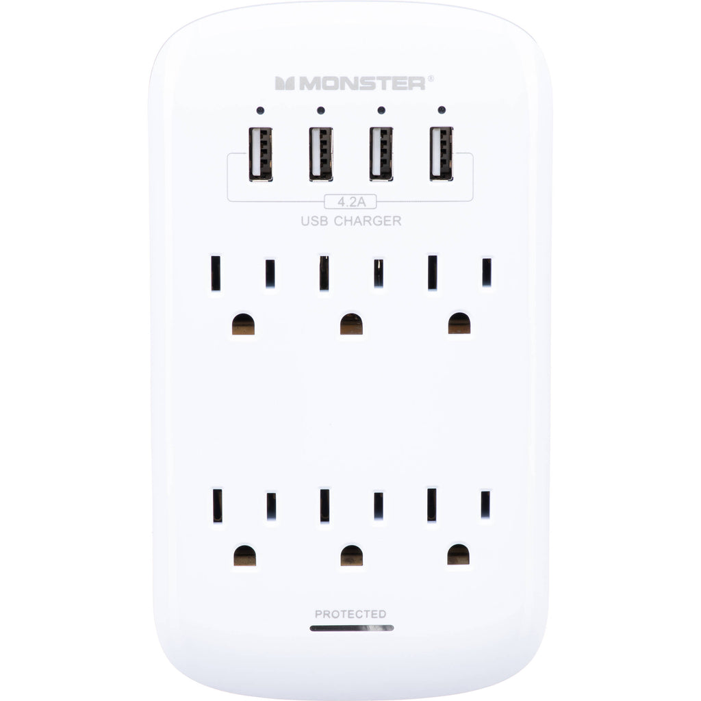 Six standard AC outlets support your standard electronics while four USB-A ports provide you with 4.2 amps of charging power for your mobile devices. The 980-joule rating protects your connected devices while an LED protection indicator tells you the status of the Wall Tap at a mere glance. Fireproof, Metal Oxide Varistor technology prevents electrical fires that could damage appliances and property, allowing you to work and play with ease.