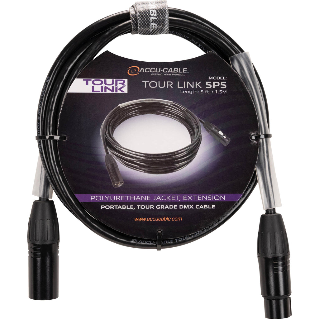 Engineered to meet the exacting demands of lighting professionals, the American DJ Tour Link 5P5 is a professional, 5' 5-pin DMX cable designed for linking and controlling lighting effects and well suited for professional touring and production companies.