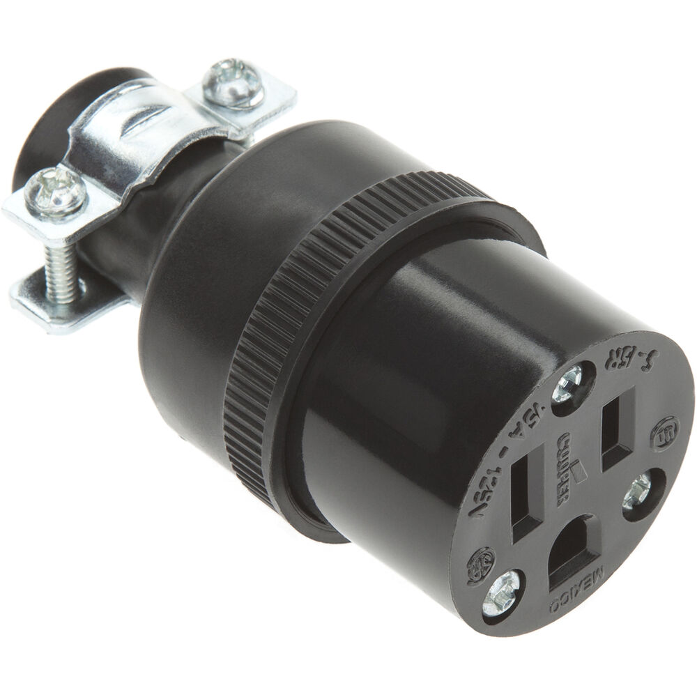 This 3" long SL-152 NEMA 5-15 Female Outlet from Bayco Products has a metal clamp for secure installation and 15-amp capacity. Keep it as a spare or use it to replace broken or damaged NEMA 5-15 female connectors.