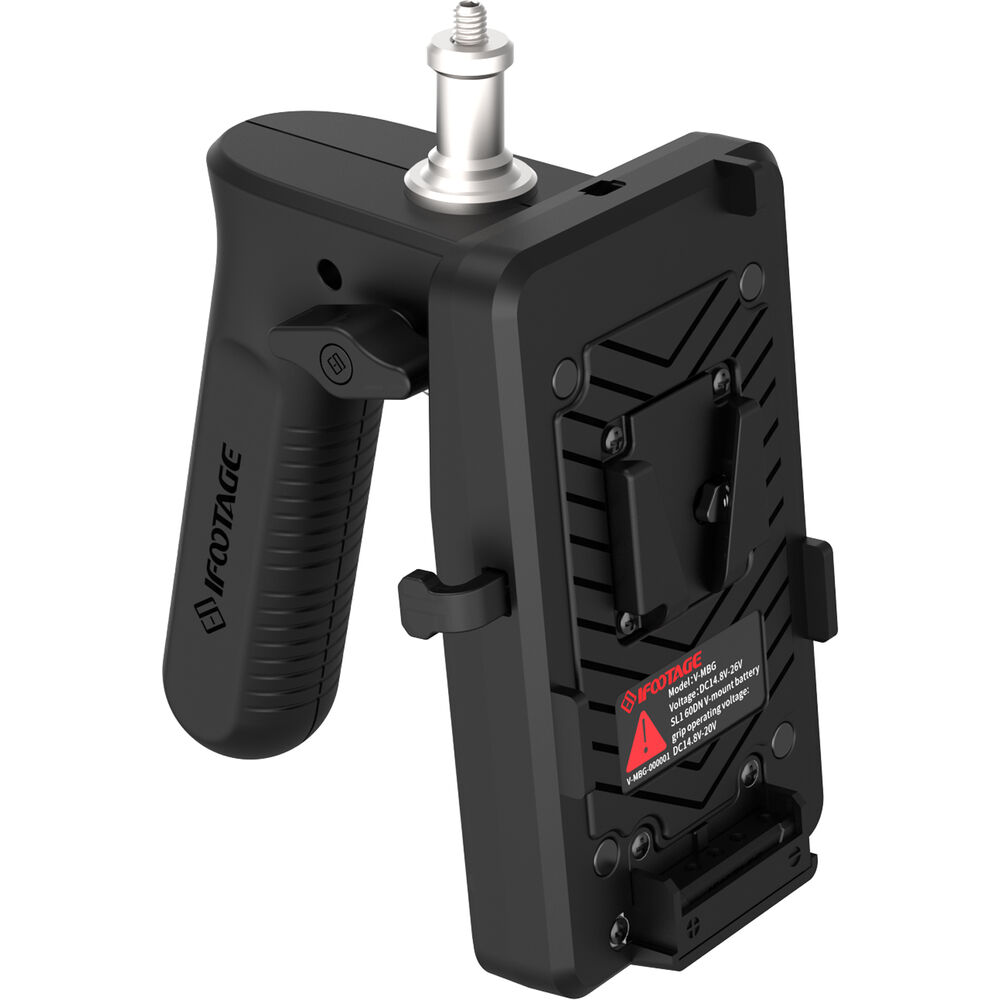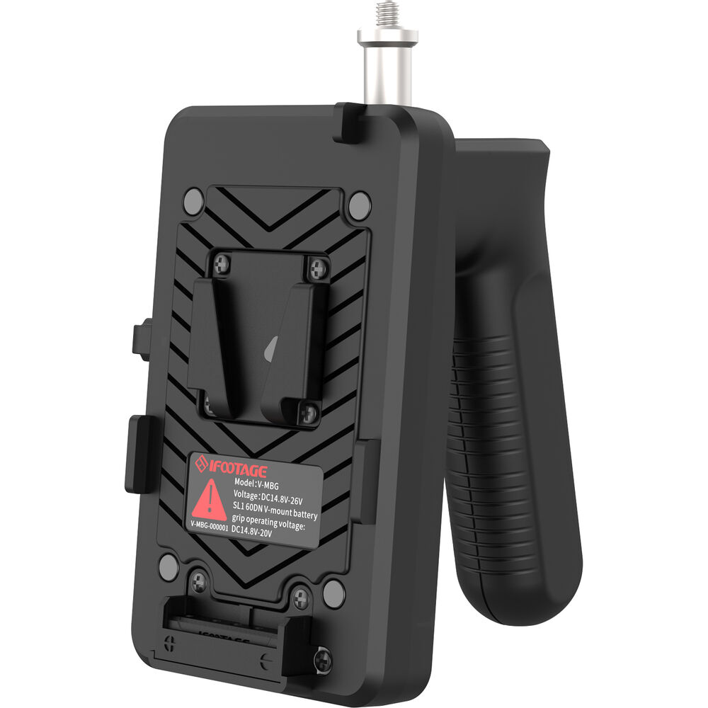 The iFootage V-Mount Handheld Grip features an ergonomic handle for handholding a separately purchased V-mount battery.