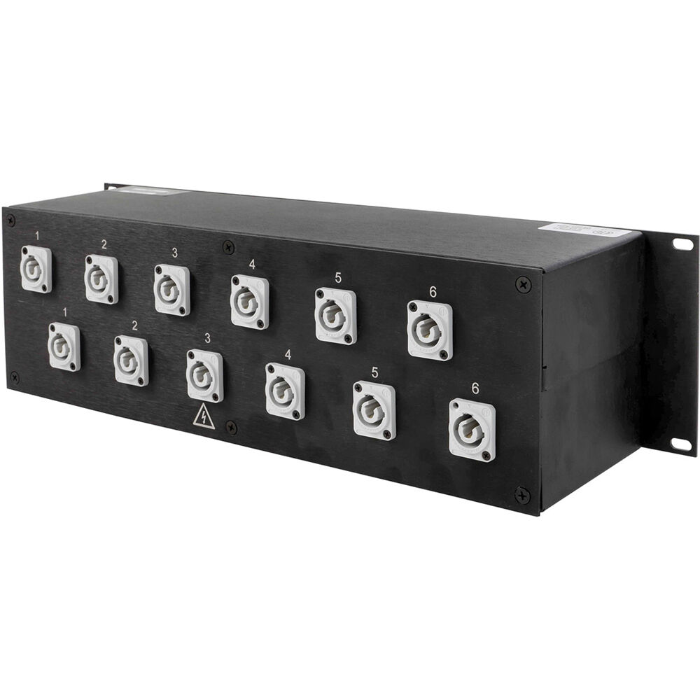 The 3 RU 30A L21-30 to powerCON Enclosed Rack from Lex Products mounts on standard 19" permanent and rolling racks. Its modules are fully enclosed, making them portable and easily installed for a range of needs. Features include branch-rated circuit protection and indicator lights for the clear presence of power, as well as laser-etched numbers for easy circuit identification. The unit's anodized black metal construction is lightweight and durable to withstand years of use.