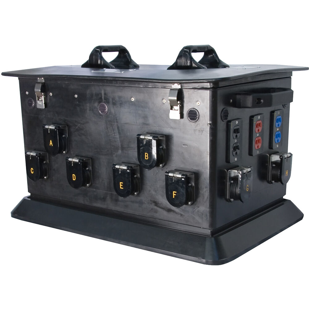Whether at a concert or other live event, the Lex Products 400A Power Station Jr provides sufficient power to lights, speakers, and other devices. Feed the station from a generator or panel and supply overcurrent-protected power to eight industry-standard, 19-pin, 6-circuit lighting receptacles, as well as three duplex outlets for convenience.