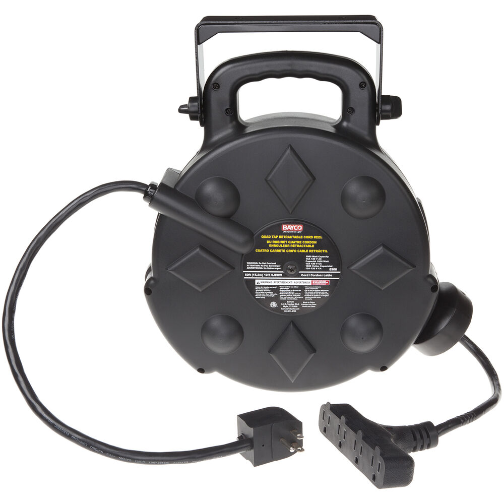 - Bayco Products SL-8906 Retractable All-Weather 4-Outlet Extension Cord Reel (15A, 50')