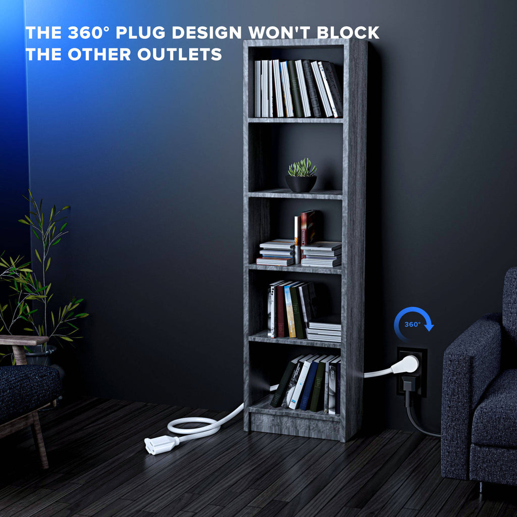 Give your devices power without changing up your environment with the Maximm Original Style 360° Rotating Flat Plug Extension Cord. The flat plug design features a 360° swivel head, saving space when plugged into your outlet. Easily snake the cable around furniture and under carpet thanks to the cable's 16 AWG flat design. You get three standard 3-pronged outlets suitable for most devices.
