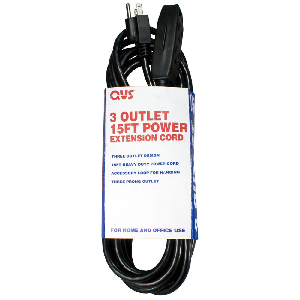 QVS 3-Outlet 3-Prong Power Extension Cord (25', Black)