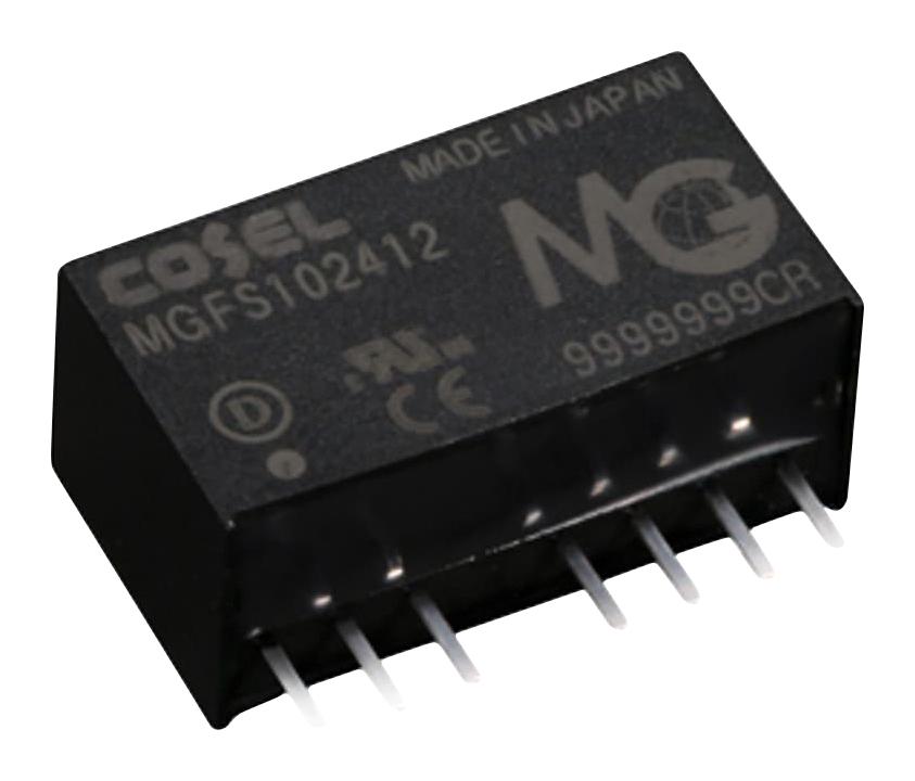 MGFS10243R3 is a MGFS10 series PCB mount DC-DC converter in an industry standard 8 pin SIP package. It features include built-in overcurrent protection circuits (recovers automatically) and built-in remote ON/OFF.