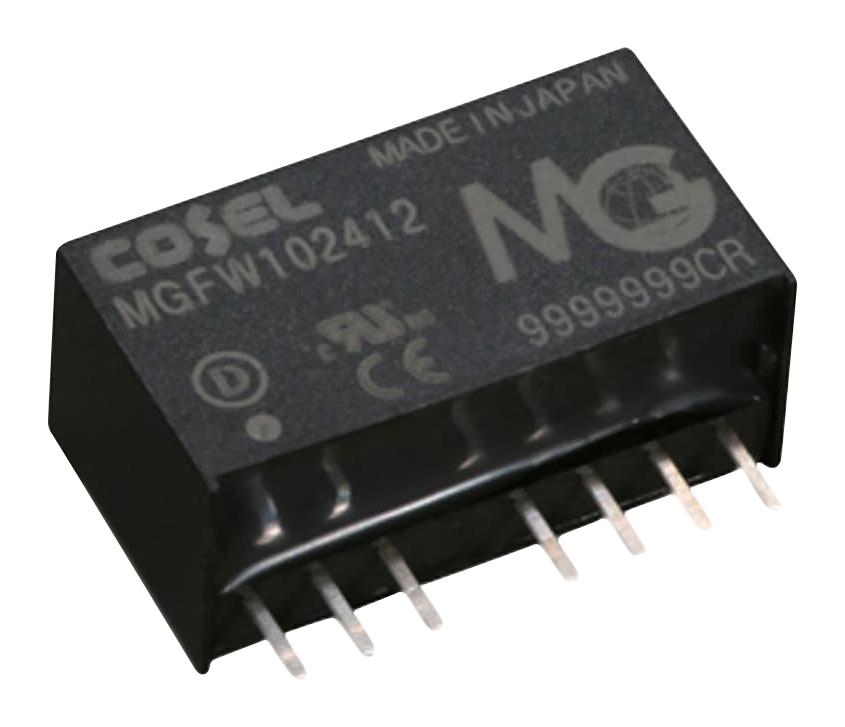 MGFW104812 is a MGFW10 series PCB mount DC-DC converter in an industry standard 8 pin SIP package. It features include built-in overcurrent protection circuits (recovers automatically) and built-in remote ON/OFF.