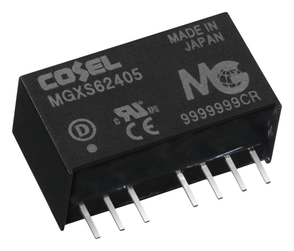 MGXS62405 is a MGXS6 series PCB mount DC-DC converter in an industry standard 8 pin SIP package. It features include built-in overcurrent protection circuits (recovers automatically) and built-in remote ON/OFF.