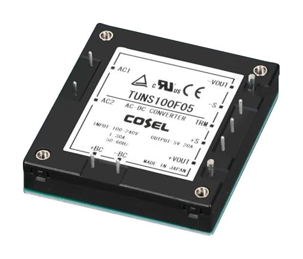TUNS100F24 is a TUNS100F series PCB module type AC to DC power supply bus converter. Approved by UL60950-1, C-UL (CSA60950-1), EN62368-1 safety approval.