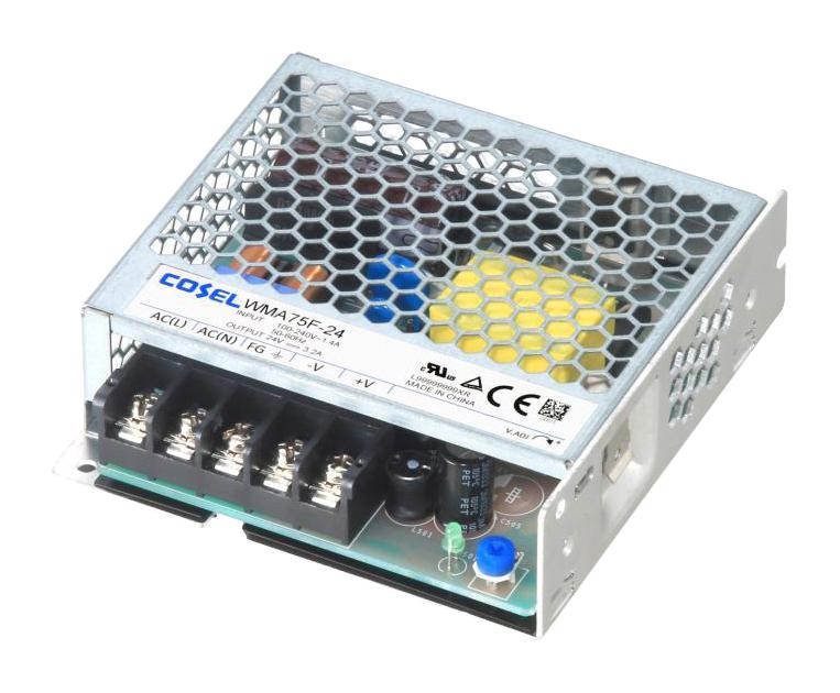 WMA75F-24 is a WMA series medical type, AC-DC power supply. Approved by UL62368-1, C-UL (equivalent to CAN/CSA-C22.2 No.62368-1), EN62368-1, ANSI/AAMI ES60601-1, C-UL (equivalent to CAN/CSA-C22.2 No.60601-1), EN60601-1 3rd, EN61558-2-16 (OVC III), complies with IEC60601-1-2 4th Ed.