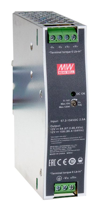 This is a DC/DC Converter, ITE & Railway, 1 Output, 120 W, 12 V, 10 A product from MEAN WELL with the model number DDR-120C-12